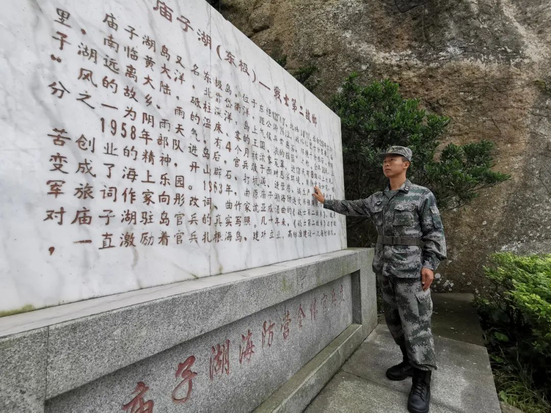 老海岛精神,深深影响着每一位庙子湖岛守防官兵。这里的每一棵树、每一块石头,都有着老前辈们洒下血汗的痕迹。