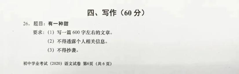 今年上海中考作文题公布,