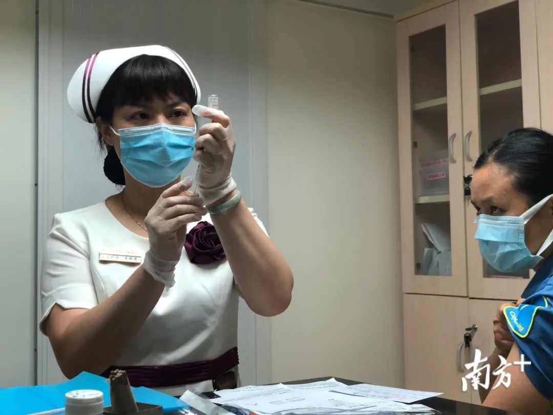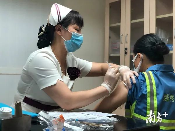 活动当天,在中山大学中山肿瘤防治中心,13名环卫工人享受公益活动获得免费接种。