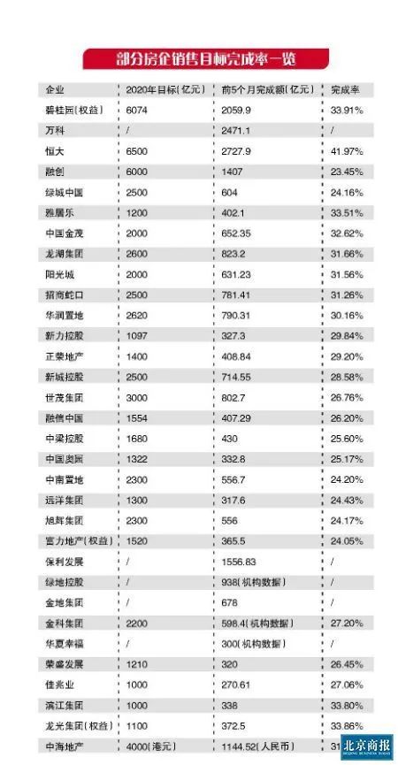 其余明确公布前5月业绩快讯的房企中,保利发展、绿地控股、华夏幸福、金地集团等同样未设固定销售目标。若以2019年年终销售业绩测算,完成率分别为保利发展33.71%,绿地控股24.18%,金地集团32.19%,华夏幸福20.95%。