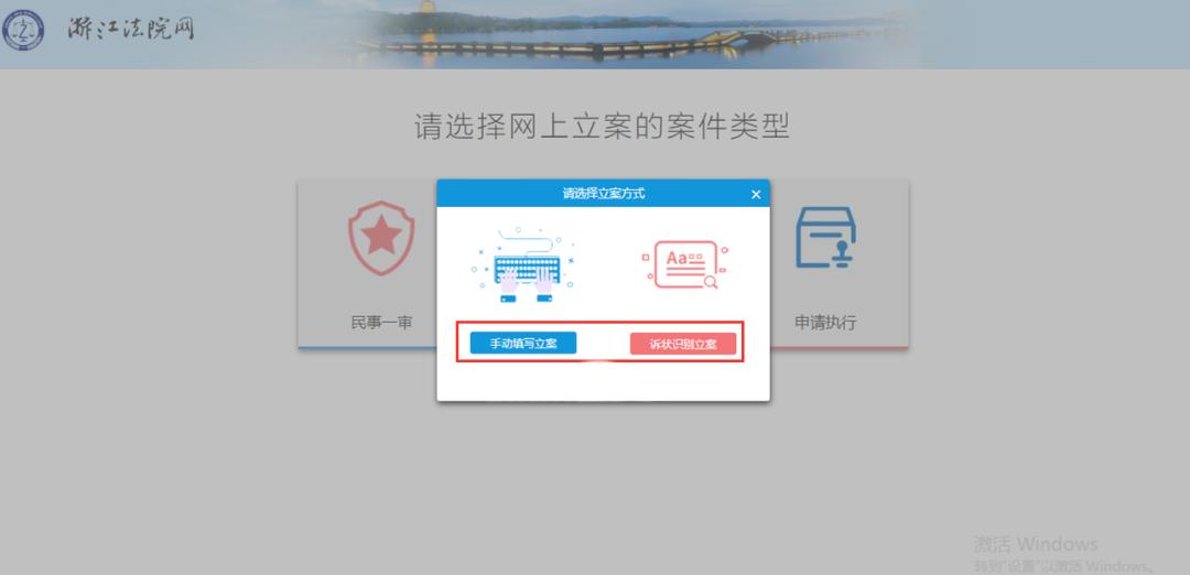 网站搜索浙江法院网(http://www.zjsfgkw.cn/),选择“我要立案”。