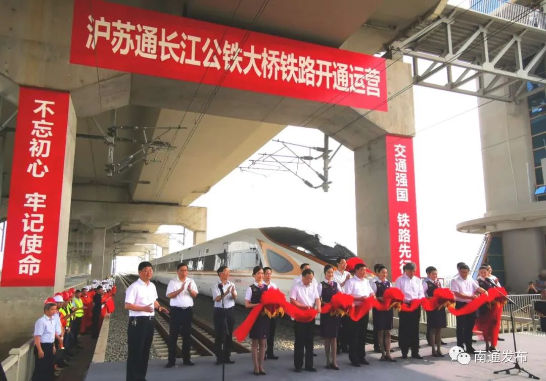 今天(2020年7月1日)上午,在江苏省委书记娄勤俭、省长吴政隆、国铁集团董事长陆东福和上海市副市长汤志平的共同见证下,沪苏通长江公铁大桥铁路开通运营。南通市委书记徐惠民、市长王晖等参加活动。