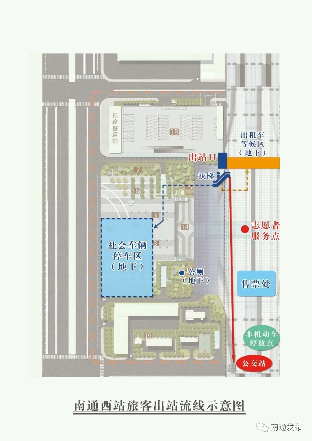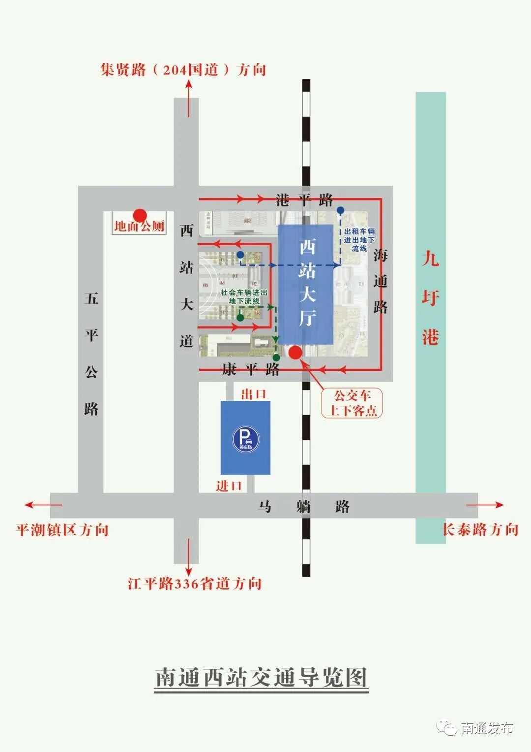 南通西站今天正式运营,到了南通西站应该怎么走呢?平潮高铁新城特别推出南通西站交通导览图,以及旅客出站、进站流线示意图,有了以下三张图的帮助,将让您的通行更加方便快捷。