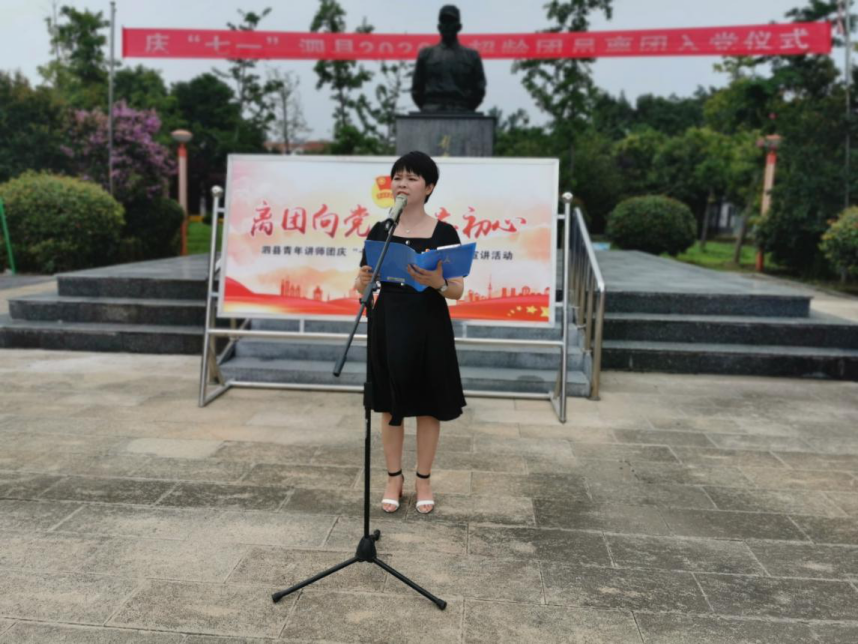 “班主任对我说:‘从今天开始,你就是一名团员了!’我把团员证带回家,给妈妈看给爸爸看,那种自豪与骄傲,我永远也不会忘记……”活动中,泗县青年讲师团成员朱佳琪作为超龄团员、青年党员代表分享了入团故事与“毕业”感言,宣讲了泗县援鄂英雄史慧的事迹,并带领与会团员面向团旗重温入团誓词。