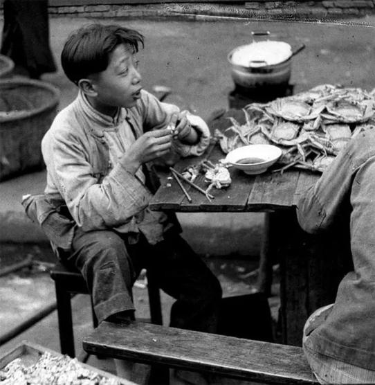 繁忙的街景公园里的两位老人黄浦江上的船只街头行医治眼老城隍庙得意楼算命先生正在吃蟹的少年。这张照片还曾被网络误传为“贫穷人家靠吃大闸蟹维生”,很多人感叹“生错了年代”!/ 1950s的上海 / 摄 / 弗拉迪斯拉夫·米卡沙