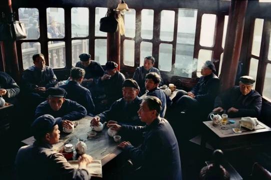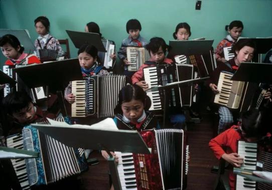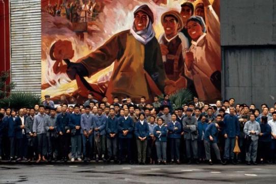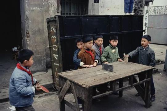 中国是非常重要的文明古国,她一方面寻求和保留自己的文化遗产与身份,一方面又在不断发展、走向现代,这一点让中外摄影师都为之着迷。《国际歌宣传画》,1973年豫园湖心亭,1980年上海少年宫手风琴班,1980年婚纱照,1980年在议价杂粮店排队,1980年在沪南电表厂门口打乒乓球,1980年中学生,1980年外滩集体太极,1980年2010年/ 1990s的上海 / 摄 / 汉斯·克雷默斯