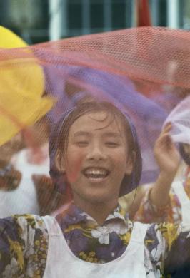 工人们欢迎蓬皮杜总统的队伍,1973年在田野上做早操,1980年还有一件趣事。1973年与蓬皮杜总统随访时,巴贝曾在上海虹桥机场的欢送队伍中捕捉到一个小女孩在雨中挥舞着丝巾、绽放美丽笑容的瞬间。2006年这张照片登上《旧闻周刊》,当年的女孩已经50多岁,她认出了自己并设法与巴贝联系,两人最终在巴黎相见!
