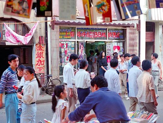 苏联代表团摄影师弗拉迪斯拉夫·米卡沙曾拍摄过举行开国大典时的北京城,为新中国成立留下最珍贵的瞬间。这位摄影师也用彩色胶片记录下了新中国刚成立时的上海滩,古典又时髦的气息永久地留在了底片里。1950s的海报审美水平已经很高了,怪不得复古风潮在今天的魔都仍然流行呢!/ 1980s的上海 / 摄 / Bruno Barbey