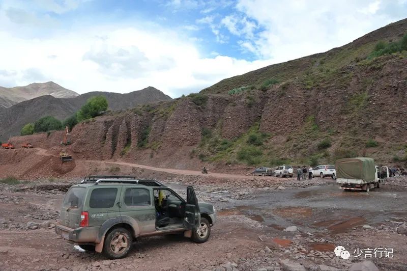 去香堆镇的路上,遇到县乡道的抢修,大家都耐心地停在河边,无聊地等待,我们干脆就着河水洗起了车。在进入香堆的路途中,已经感到道路的艰难和低效。这样的路况挡住了没有耐心的游客,也挡住了现代文明入侵的脚步。这些道路在地图上是很细的黄色线,断断续续的,并不连接成网,这些靠不住的线路,正是我们在这张军用地图上奋力寻找的,带着我们返回时光隧道的正是这些涉河的、颠簸的小土路,它们更适合牲口的蹄子而不是汽车轮子。