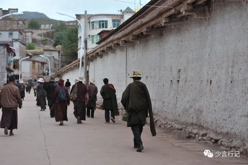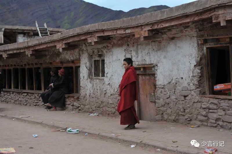 这时候是傍晚六点钟。镇中心的寺院象一块磁石,吸引着全镇的居民,男女老幼围绕着寺院默默走动,口中念经,左手摇着转经筒,右手捻着佛珠,脚下绕着寺院,走得匆忙,虔诚,只争朝夕不舍昼夜。人们动用了身体所有能够运动的器官,只为在有限的时间增加经文的次数。之前与一位年轻的援藏干部聊天,问藏人有何特点。他说,这些人时间意识淡漠,不好好工作,有事没事拿个转经筒就绕着办公楼院子转开经了。他援藏三年,仍没看出来,这些人时间意识太强烈了,从不浪费一分钟,将有限的生命尽可能多地用在转经念经上。工作,只是他们混饭的副业。藏人对精神世界的追求远大于对物质的追求,这一点,汉人是无法理解的。西藏人认为,人的此生只是过客,就像旅客住在旅馆的房间里,他会花钱花时间装修这个临时的房间吗?而我们却用了一生的时间和精力去装修旅馆的房间,没有一点点时间留给自己。