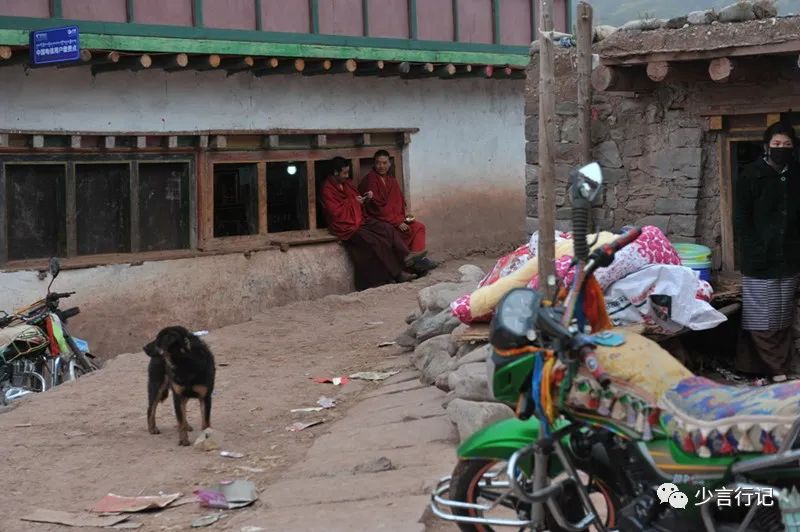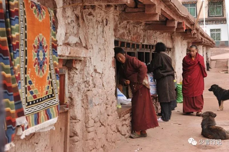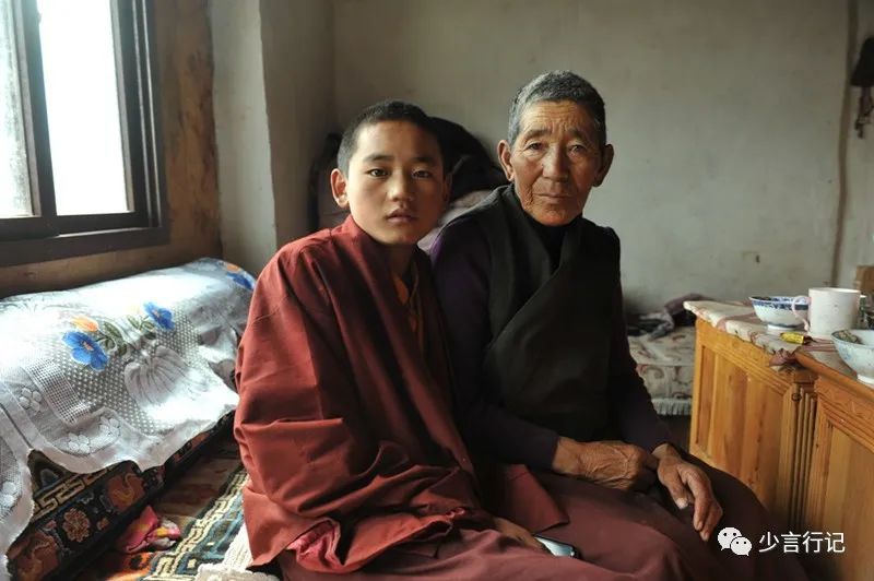 中午回到柴卓玛老妈妈的家,一个穿红衣的小喇嘛正坐在柴卓玛的身边,这是她的二孙子习仁洁美,16岁了,看上去还像个小孩子。这孩子11岁出的家,他说即使长大了也不想回来,只想去寺院,因为大喇嘛对他很好,“大喇嘛不打我,不骂我,还给我钱,一月一百元,吃住是不要钱的。”离他的家不远,山坡上有座寺院,那是他想去的地方。