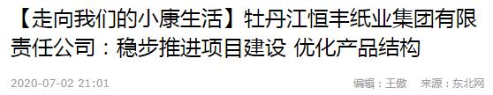原标题:《【走向我们的小康生活】牡丹江恒丰纸业集团有限责任公司:稳步推进项目建设 优化产品结构》
