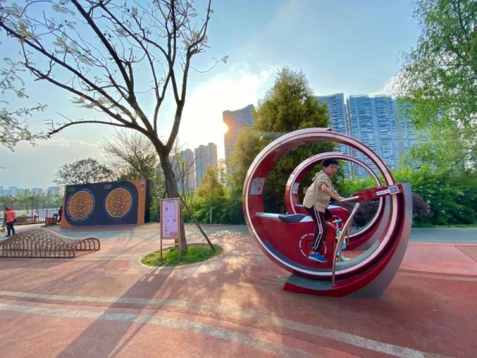 公园里设有竞速单车、光感攀岩、能量跑酷、电竞足球等项目,游客通过扫码即可体验智能交互体育设施带来的乐趣。
