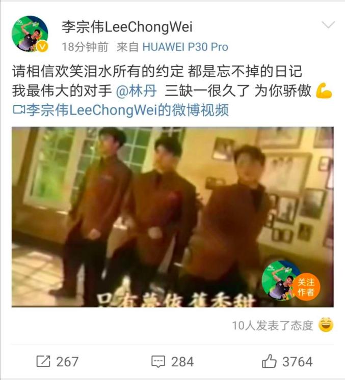 没想到就这样悄无声息地迎来了你的退役。之前总是说很难想象当你退役的那一天,我会原地爆哭成什么样子,但此刻的心情好似也很平静,喜欢你十年有余,拿督(李宗伟)退役了是一个时代的过去,你的退役亦是如此。谢谢你是我年少时的欢喜!祝好,期待下次见面,永远的超级丹……