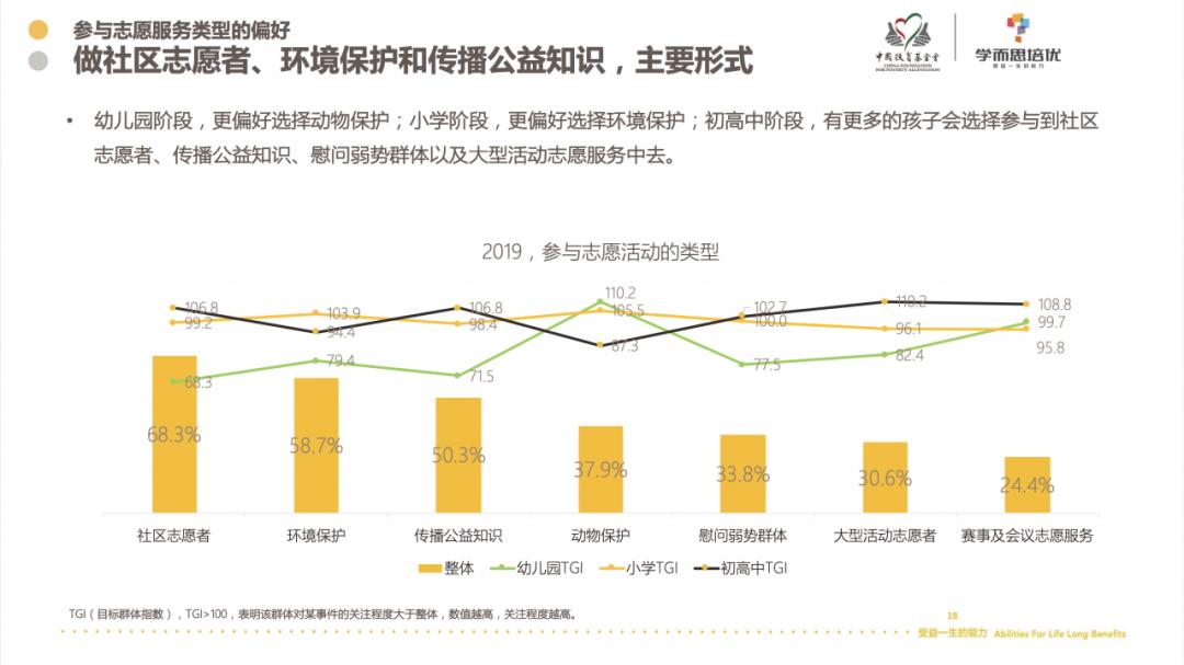 二是00后参与志愿活动偏好是担任社区志愿者、环境保护和传播公益知识。