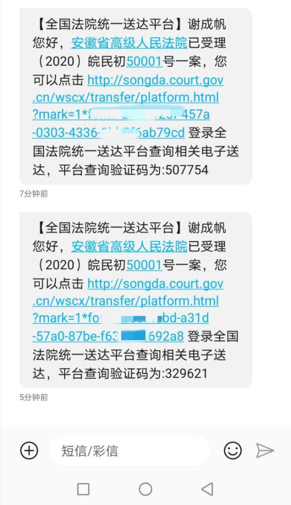 承办人操作完成电子送达后,当事人会收到一条【全国法院统一送达平台】开头的短信,当事人只要点击手机短信链接直接可以查看相关的诉讼文书,文书是以图片的格式存储,点击保存也可以将文书保存在自己的手机里,便于随时查询和查看。