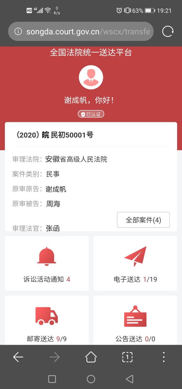电子送达目前支持三种模式的查收,分别是手机短信、电子邮箱以及统一送达平台的当事人端。可以让当事人随时随地签收查看诉讼文书,再也不用风里来雨里去的到法院取材料了。