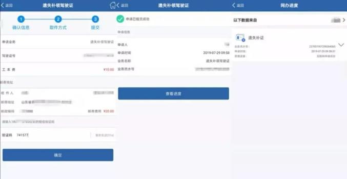 该步骤显示用户的驾驶证信息、显示如下:再次确认信息以后,点击【获取验证码】,系统会发送验证码到用户绑定的手机,用户输入手机验证码后,点击【完成提交】。该步骤提交成功后,系统生成业务流水号。该步骤提交成功后,届时会发送短信告知受理结果。用户可以根据该业务流水号在网办进度中查询业务办理进度。