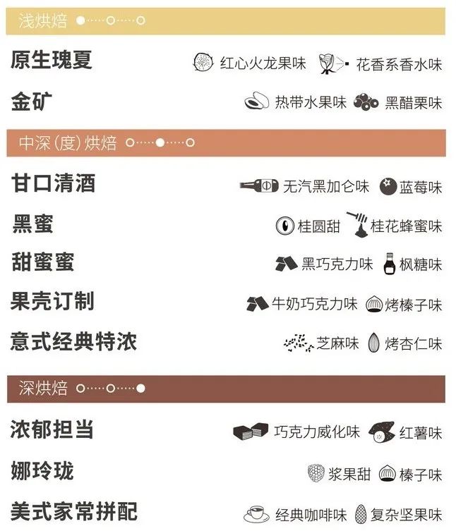 其实还是属于选豆的范畴,但是这一点非常重要所以单独说说:豆子从浅烘到深烘,基本上是“酸味越来越轻苦味越来越重”的。如果你又不喜欢酸又不喜欢苦,就选中度烘焙的呗。这一点也通常会标注在咖啡豆包装上,如果没有可以问一下客服或店员。