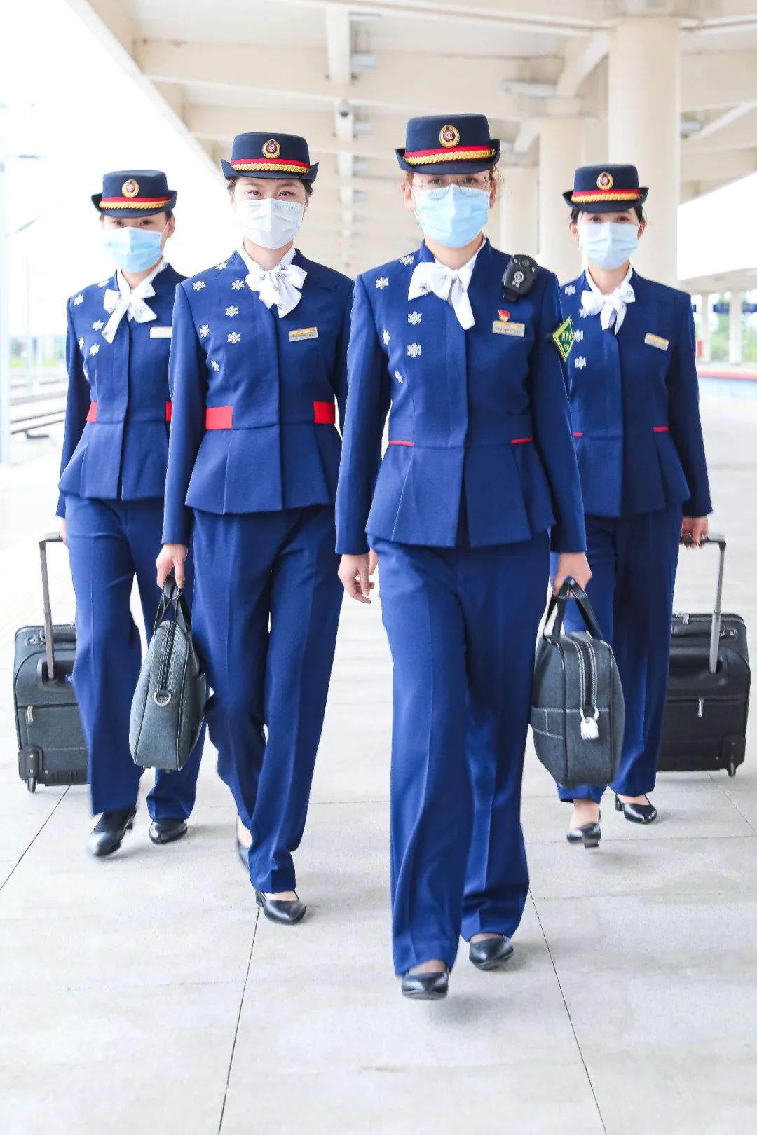 她来了她来了,高铁车队美女班组向我们大踏步地走来了……