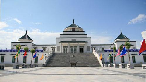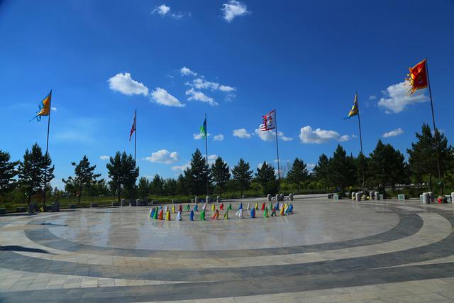 铁蹄的造型,象征着蒙古族是一个马背上的民族,广场四周的旌旗再现了蒙古大军威震四海的气势。大理石拼成的成吉思汗疆域图,记录和反映了"世界皇帝"戎马一生,横扫欧大陆的丰功伟绩。