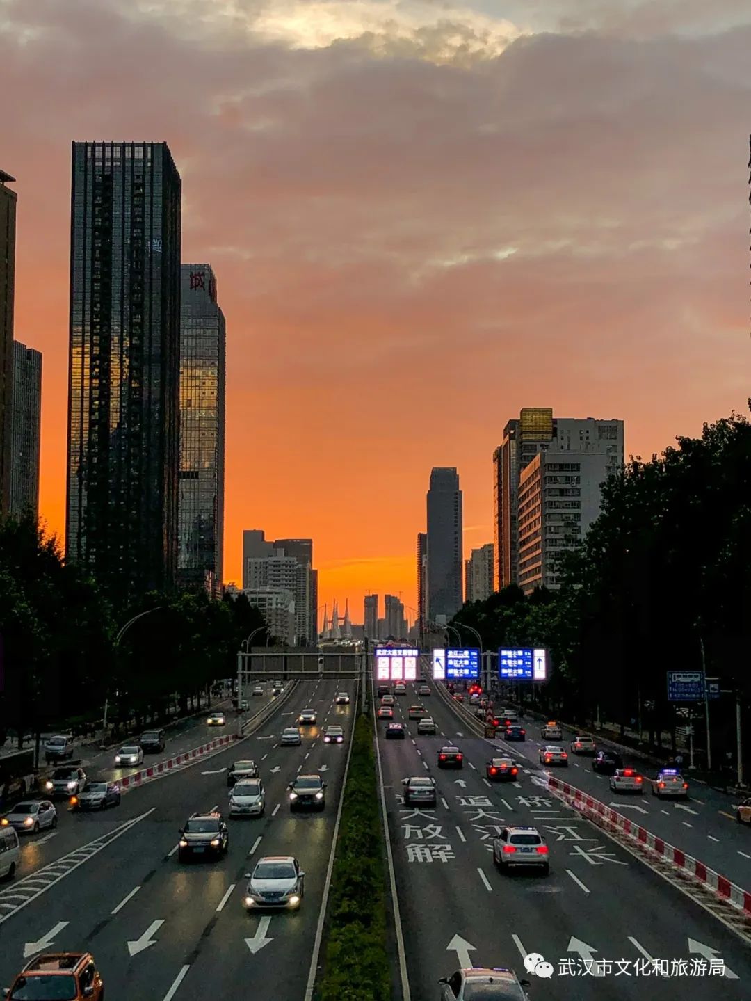 雨后初晴,云蒸霞蔚。在暴雨的夹缝中,下班路上,武汉人纷纷举起手机,捕捉生活中片刻的美丽。