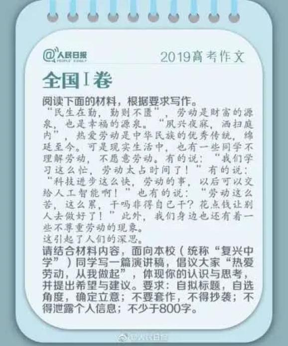 今年这个考题,所创设情境贴近考生实际,作文材料考生熟悉,有话可说;要求明确,不易偏题。相信我们的考生可以写出符合要求的思想与表达俱佳的高考作文。