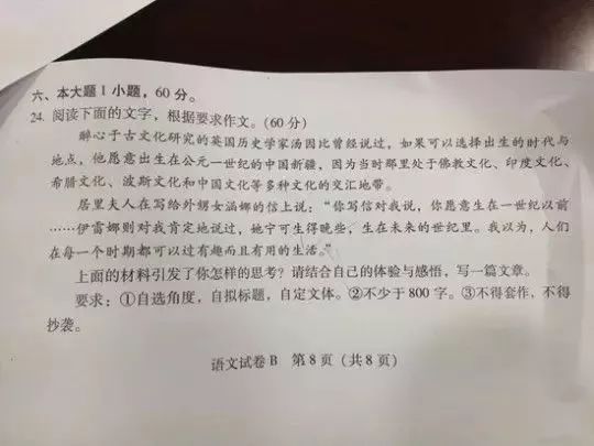 全国卷I:“时光瓶”留给2035年的18岁青年