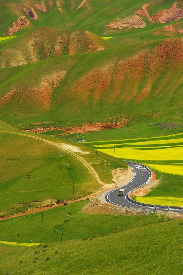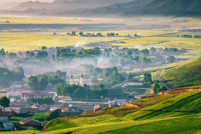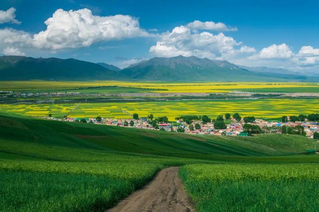 北依祁连山,西起永安城,东到玉隆滩,南邻大坂山,那片油菜花绵延上百公里,宛如金黄的大海。