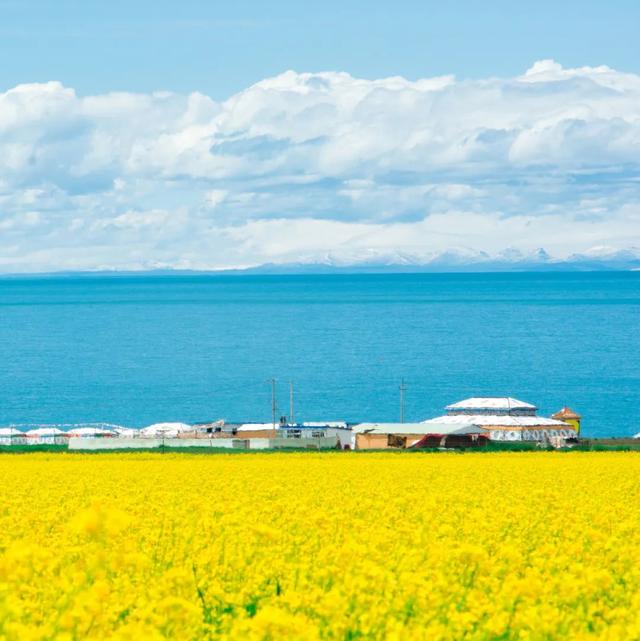 湖边的油菜花同样在绽放,一点不输门源的灿烂。