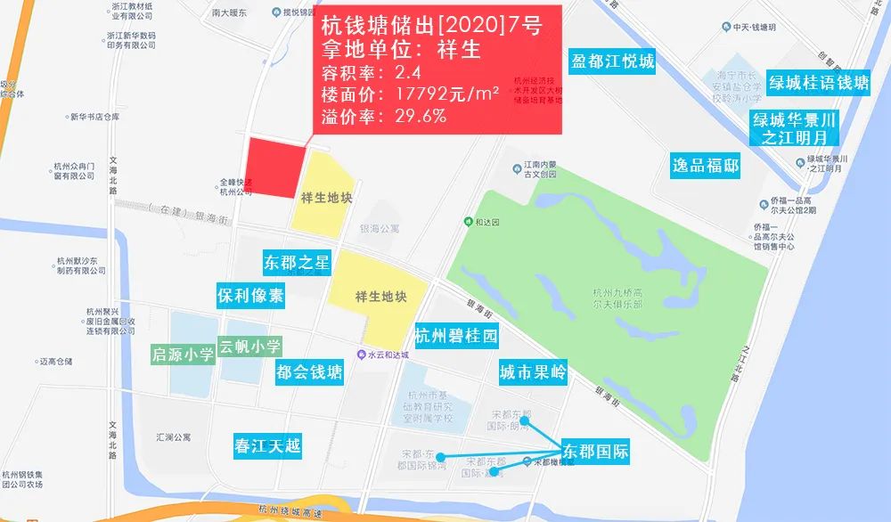 杭钱塘储出[2020]7号地块东至春新路,南至空地,西至千帆路,北至新农路。该地块于2019年10月8日挂牌,后被终止。此次挂牌与之前相比,取消了10%公租房的配建。