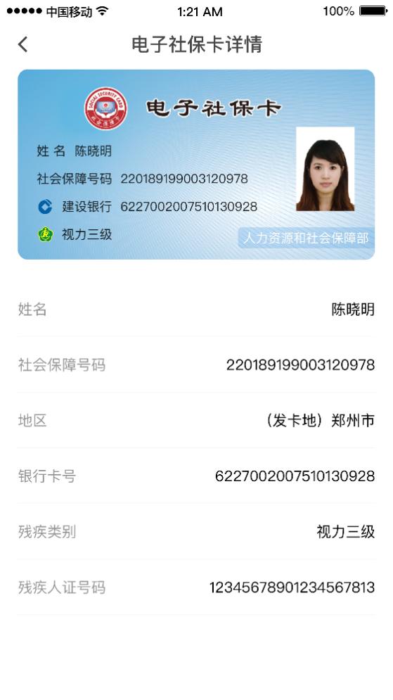 输入您的电子社保卡密码后,即可使用“亮证”功能,查看您的社保卡详细信息,包括社会保障号码、社保卡号、银行账号等。