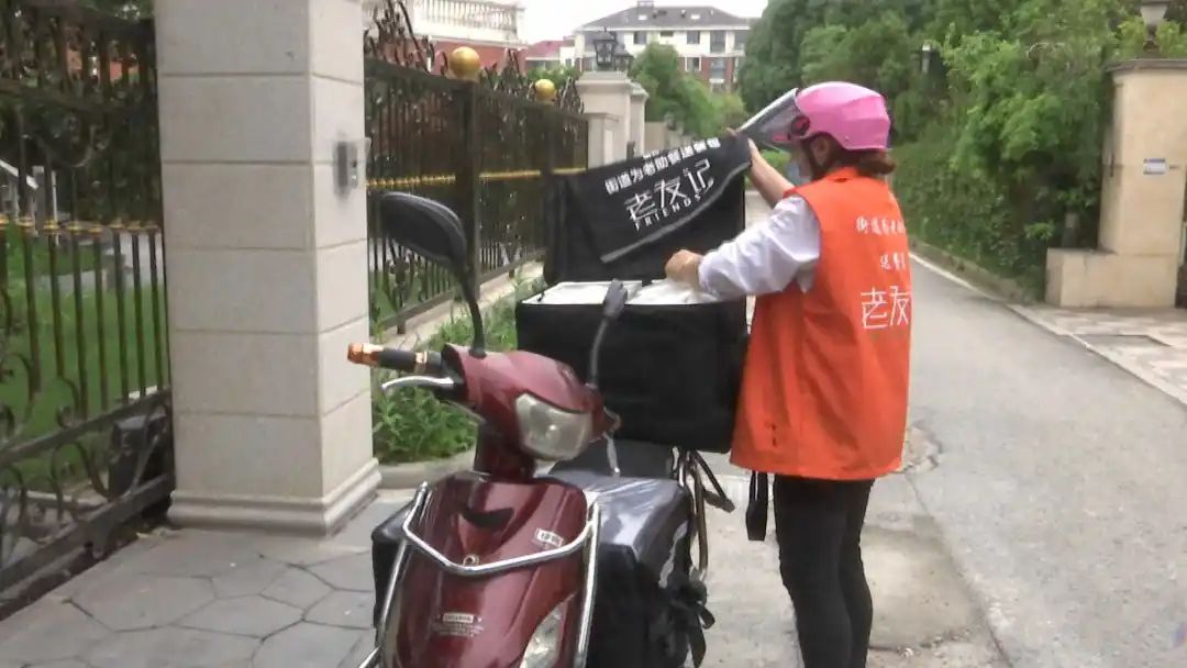 中午11点,手提着餐盒、跑上二楼,骑手高鹏熟练地把今日份的助老午餐送到了张阿婆手中。今天菜肴的大荤是红烧肉,张阿婆一看就很满意:“每天这个饭都很准时地送到,而且收到的时候都挺热乎的。”送完了张阿婆家,高鹏继续赶路送餐。这条送餐线路他已经跑了一个多月,所有的送餐地址高鹏都摸得一清二楚:“我今天要送30户,一般我到社区食堂拿了盒饭以后,保证在10:30前把第一户送到,然后在11:30以内把我这30户的助老午餐全部送完。”不只是小高,当天中午还有30位骑手也穿梭在罗店镇49个社区送餐。配送的近800份餐食全部由罗店古镇睦邻共享服务中心社区食堂供应。去年10月底,这家社区食堂开张,率先开放了堂吃服务。不过,今年春节新冠疫情突发,社区食堂关闭两个多月。期间,不时有老人和家属来打听堂吃开张时间,更有不少老人询问社区食堂能否提供送餐服务。罗店镇睦邻服务中心负责人陆晓云告诉记者:“前期我们通过宝山社区通在网络上进行调研,在线下则通过居委会的老师进行排摸。当时在线上和线下了解的一个情况大概有600多个老人,但是在我们实际登记的时候达到了800多。”在4月中旬社区食堂恢复营业后,为了满足如此量大面广的送餐需求,罗店镇迅速把送餐服务提上议程。要满足老人送餐需求,餐食制作和配送是最关键的两大环节。由于中心社区食堂是与一家专业从事助老餐制作的企业合作,扩大餐食供应量并不是问题。但是“谁来送、怎么送”的配送环节却成了难题。最后,经过多方比较和调研后,罗店古镇睦邻服务中心选择了第三方合作模式。罗店镇睦邻服务中心负责人陆晓云介绍:“配送区域比较大、范围广,所以说招募志愿者的难度还是有的,后来我们还是想通过第三方的合作,用专业的人做专业的事。同时企业还有一个订餐软件,来配套配送,以此确保每一天的送餐不会有误差。”