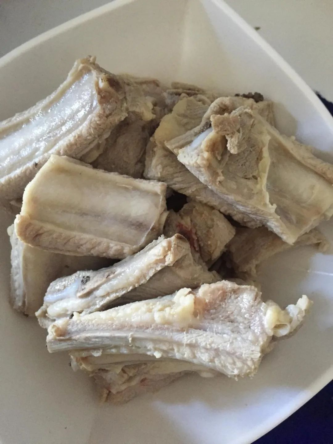这时候的排骨明显变白,这是去除肉腥味的关键,也使成品颜色洁白晶莹。