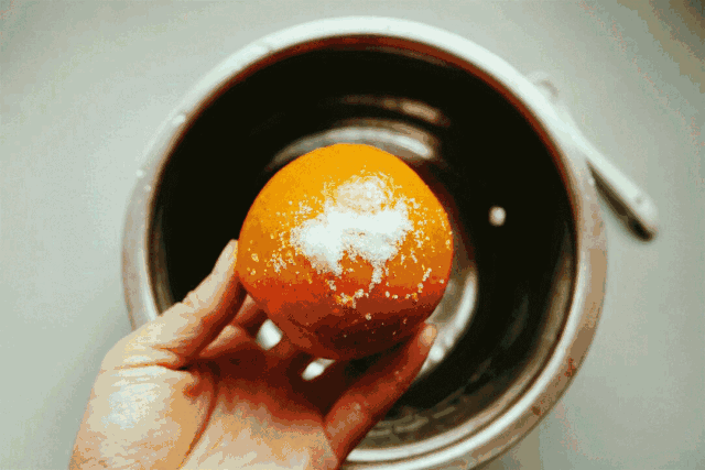 食 材 :排骨一斤、橙子一个、冰糖 50克、料酒 1汤匙、生抽 1汤匙、盐。