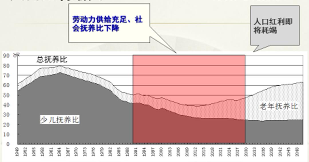 该系数越小,表明一个国家或地区的抚养负担越轻。人口学把总抚养比在50%以下称为“低抚养比”,研究表明,低抚养比时期是人口年龄结构的“黄金时代”,有利于社会经济发展,会提供“人口红利”。