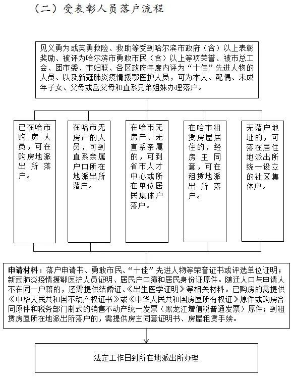 在哈市9城区依法依规租赁房屋连续居住半年以上的承租人,与房屋所有人签订合法租赁协议,可为本人、配偶、未成年子女、父母或岳父母和直系兄弟姐妹办理落户。在房屋所有人同意情况下,出租房屋地址可落一户承租人户口;在不同意情况下,可到居住地派出所统一设立的社区集体户落户。