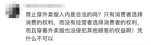 他说,并不是“穿外卖员工作服不能进入商场”,而是现在外卖员来取餐,无论穿什么衣服,都不能进入。