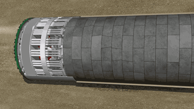 盾构机的推进系统主要由盾构千斤顶和液压设备组成,沿支撑环呈圆周状分布,通过向管片施加压力,反推盾构机向前掘进