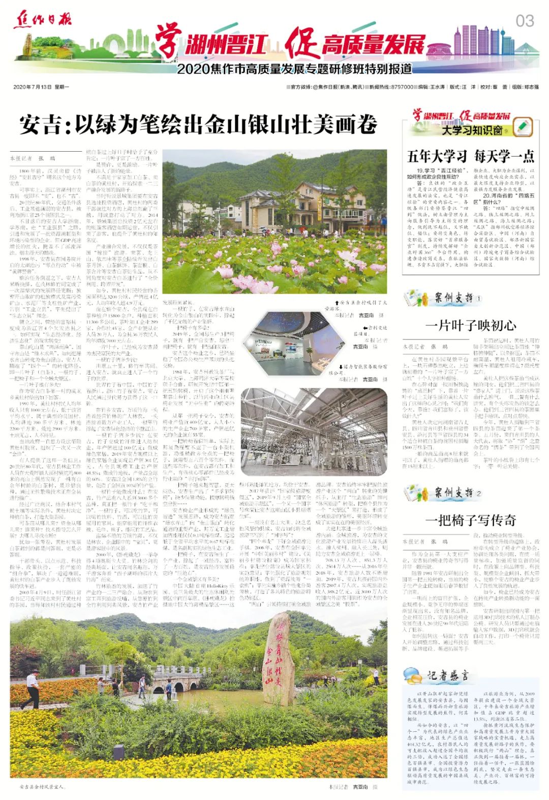 以开山取矿起家却凭绿色发展发家的安吉县,与因煤而生、伴煤而兴却靠旅游实现转型发展的焦作,何其相似。
