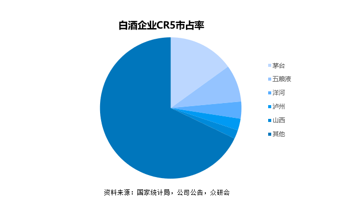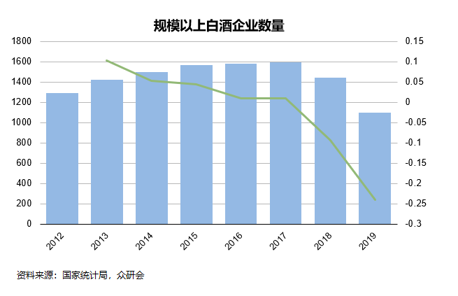 2019 年全国白酒酿酒行业规模以上企业总计 1098 家,企业增速逐年放缓并在2018年开始数量有所减少。企业数量减少速度明显快于产量减少的速度,行业集中度已经开始提升,呈现挤压式增长。