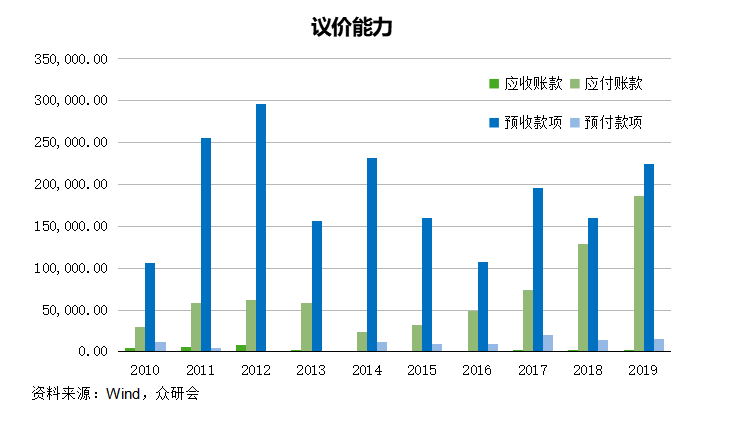 从议价能力方面来看,公司的应付账款和预收款项相比较高,公司对于上下游的话语权都比较强,拿着上下游的钱在为自己创造利润。