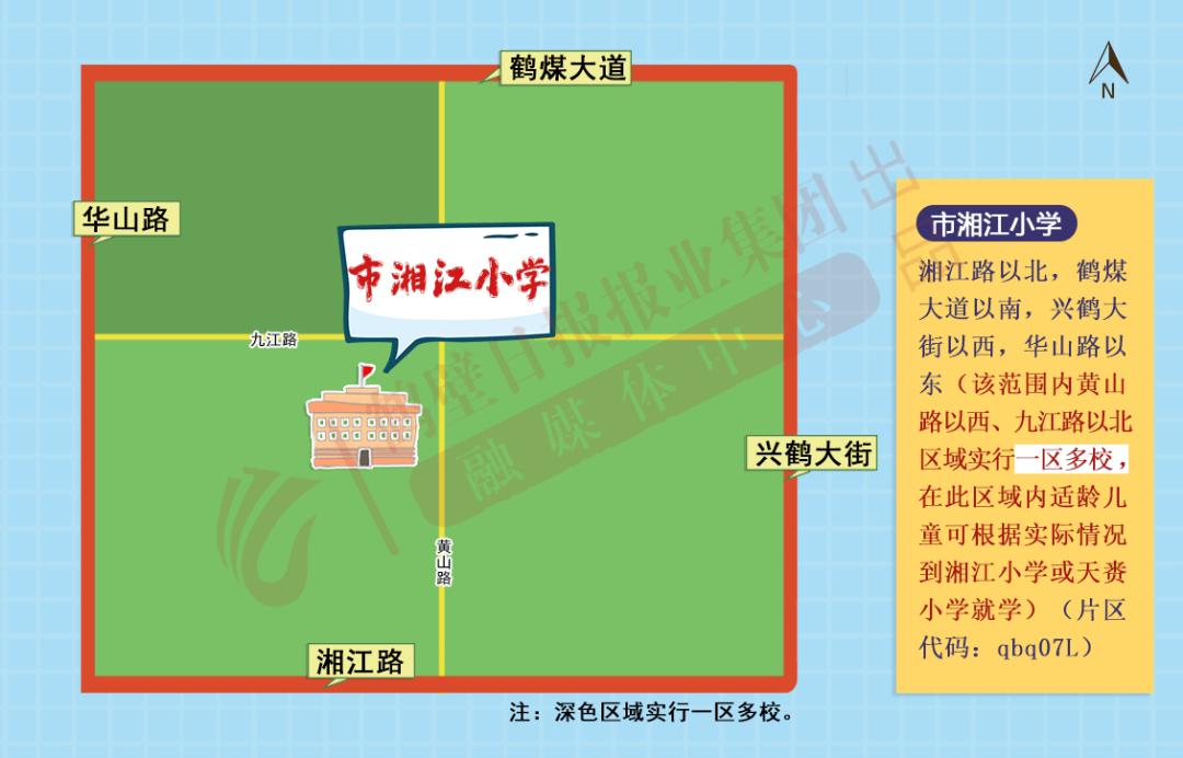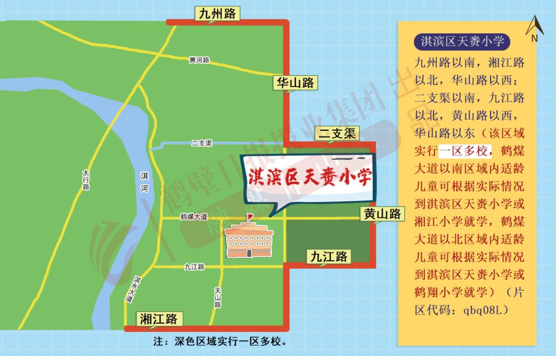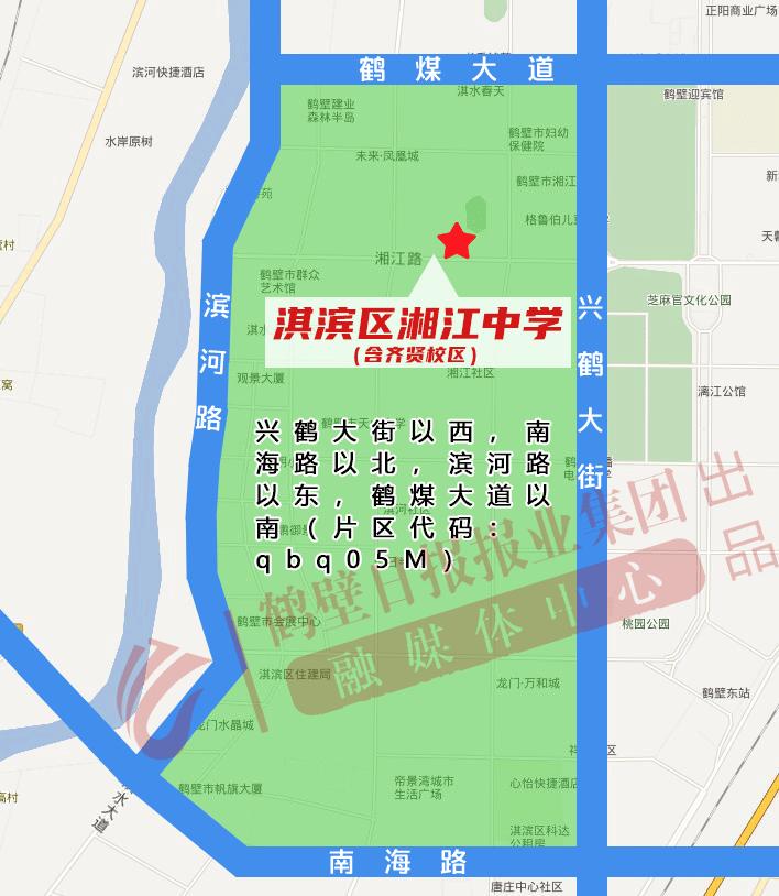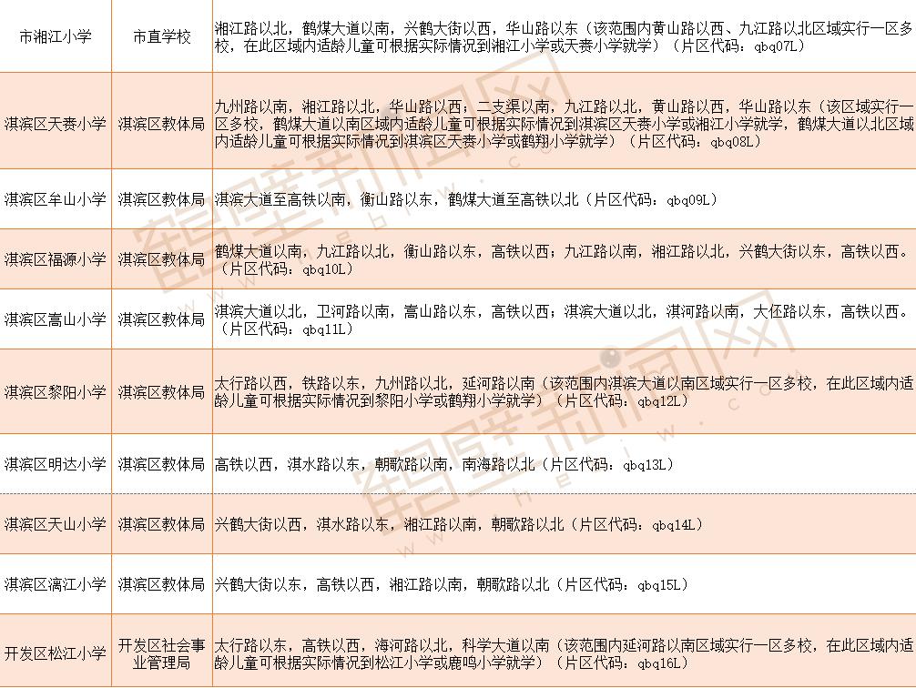 淇滨区天山小学、淇滨区明达小学、鹤壁科达学校对口淇滨区湘江中学齐贤校区;