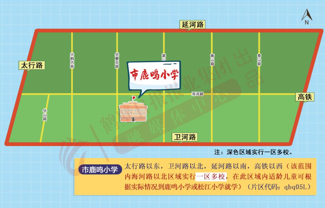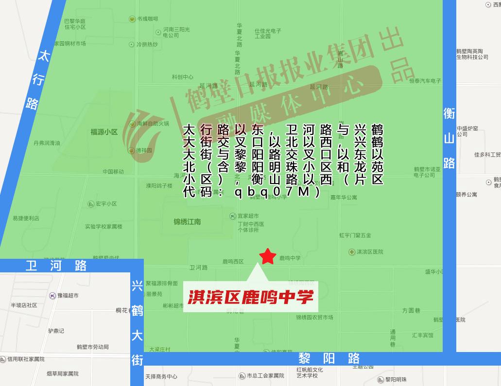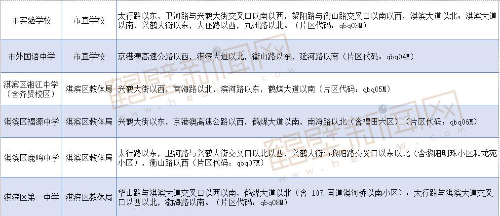 市鹿鸣小学、淇滨区嵩山小学、开发区松江小学对口淇滨区鹿鸣中学;