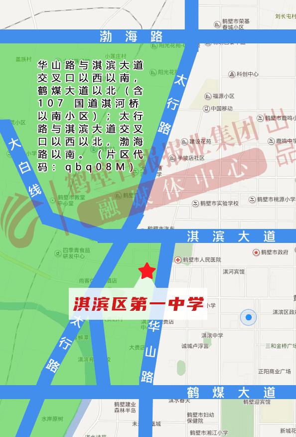 长风路以西红旗街(至鹤煤技校)以北,鹤煤技校以东,胜利一巷以东 汤河以南,卫星街以南奔流街七巷以西;汤河街九巷以西(老煤场路), 胜利一巷(九完小门前路)以西,胜利一巷桥以北,西环城路以东,西 岭路(鹤煤技校)以西,杨邑村以南(该区域实行一区多校,在此区域 内学生可根据实际情况到第二中学或第七中学就学)(片区代码:scq01M)