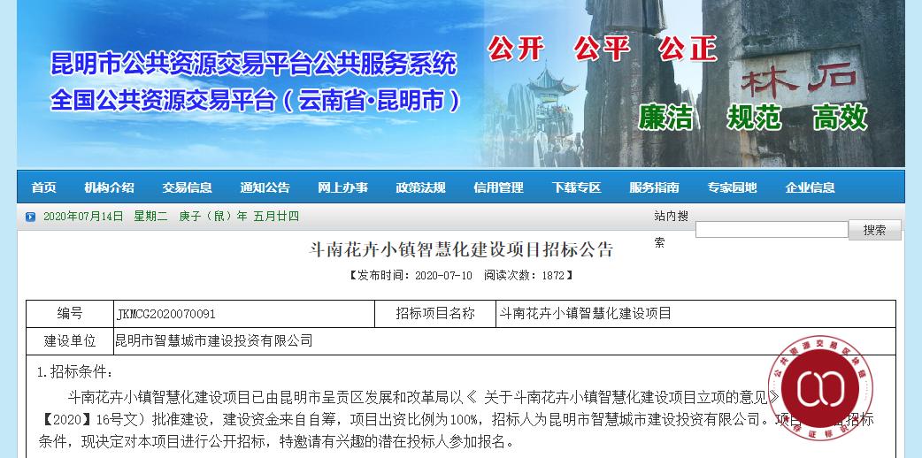 据昆明市公共资源交易平台发布《斗南花卉小镇智慧化建设项目招标公告》,昆明拟投资2152.54万元进行斗南花卉小镇智慧化建设。项目预计工期4个月,计划开工时间为8月10日,计划竣工时间12月10日。