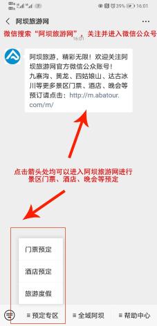 您可以先进入阿坝旅游网微信公众号或者微官网http://m.abatour.com/m/ 页面,选择您想游玩的景区~进入订票页面,选择您所需的门票类型哦~(比如:免门票套票——医护工作者免门票套票、医护工作者陪伴家属免门票套票等)