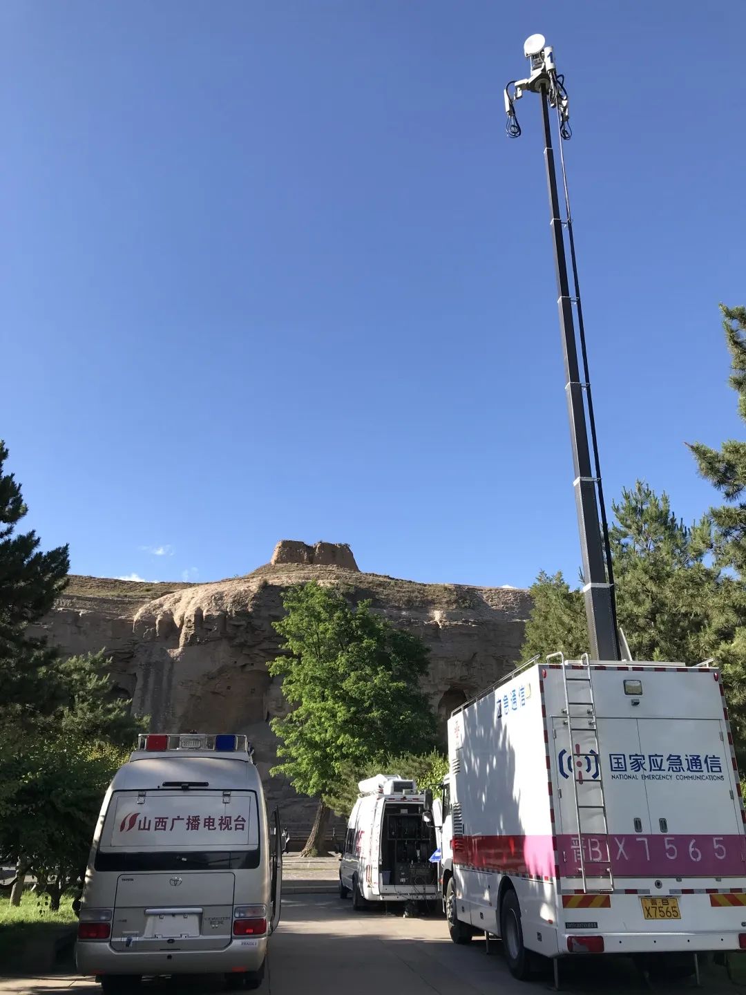 到了云冈,情况则完全不同。“真容巨壮”(《水经注》语)的云冈石窟,将彻底交由我和主持人了。我们计划的行走范围极广,从西部的39号窟直到东头的3号窟,直线距离近1公里,而且包括出入39、18、9(10)和3号窟。为了追求高质量的拍摄效果,团队一共动用了4名摄像师,加上无人机,以及我们的授课PPT,一共有6个画面供位于导播车中的导播老师调度(为此我的学生兼老友唐恒鲁还特地前来协助放映PPT)。直播就是“一条过”,一镜到底的活儿,各环节的默契配合至关重要。来到现场,看到20号窟大佛(即作为云冈标志的大佛)前广场南侧停着的信号车和导播车,已可见其阵仗。