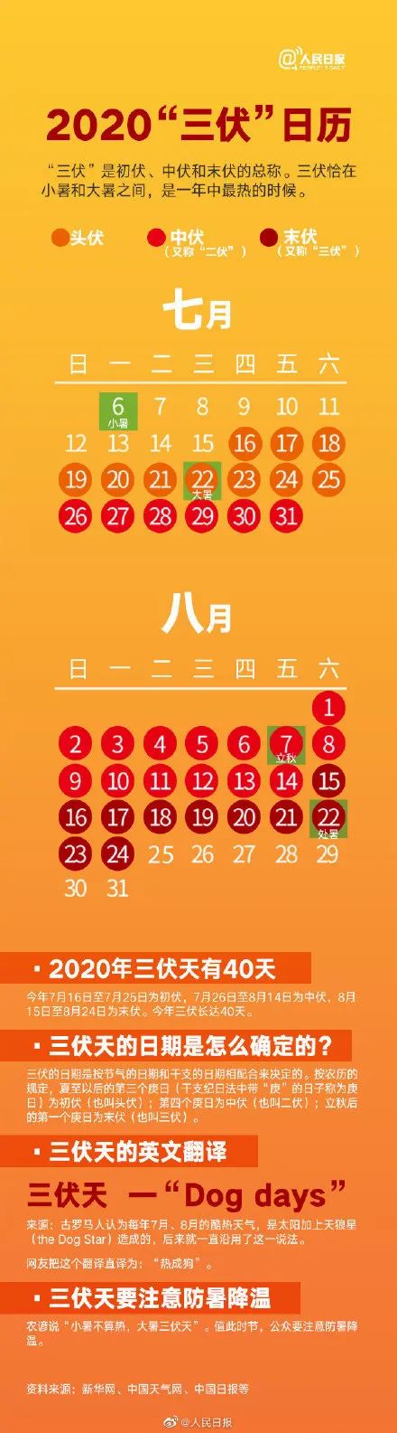 一图看懂2020三伏天那些事↓↓天气炎热,注意防暑降温。(上下滑动查看)
