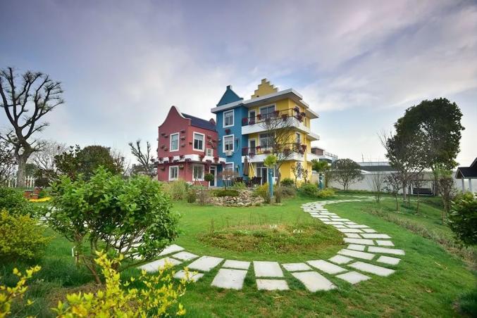 春季1号院,芳草池塘、绿阴庭院、郁郁葱葱,环绕红蓝黄色两三层建筑小楼,小资文艺慢生活胜地。